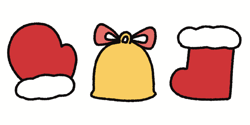 HOME > 季節 > 【フリー素材】クリスマスのイラスト(手袋 ブーツ ベル) 2025年4月18日 クリスマスツリーに飾れそうなイラストです。 画像を長押しで保存できます。 ご利用に関しては利用規約をご確認ください✨素材のイラストリクエストなどはお問い合わせからお気軽にご連絡ください✨ クリスマスツリー、片付けずに年越しがちだよね。 Twitter Share Pocket Hatena LINE URLコピー この記事を書いた人 くまぴ ゆる可愛いイラスト描きます🌷 お問い合わせや素材のリクエストは 問い合わせフォームかInstagram DMまでお待ちしています✨ -季節, 未分類 -クリスマス, ベル, 冬, 手袋