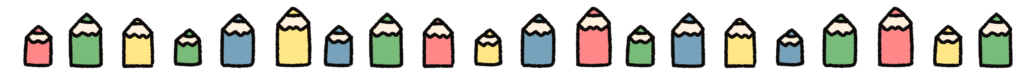 HOME > ライン > 【フリー素材】鉛筆のライン 2025年4月18日 鉛筆を並べたラインイラストです。 学校のおたよりに使ってください! 画像を長押しして保存してください☺️ ご利用に関しては利用規約をご確認ください☺️ 素材のイラストリクエストなどはお問い合わせからお気軽にご連絡ください✨ Twitter Share Pocket Hatena LINE URLコピー この記事を書いた人 くまぴ ゆる可愛いイラスト描きます🌷 お問い合わせや素材のリクエストは 問い合わせフォームかInstagram DMまでお待ちしています✨ -ライン, 学校, 文房具 -ライン, 学校, 文房具, 鉛筆
